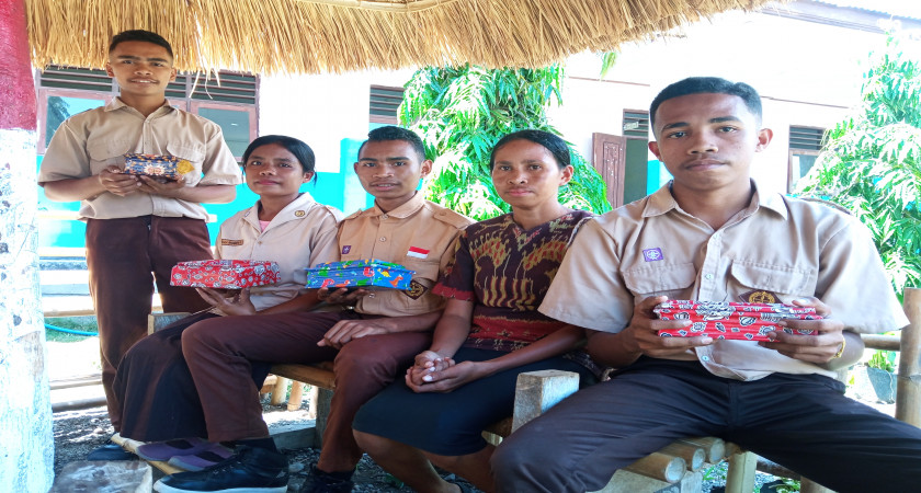 Oelfatu, sman1amfoangbaratlaut.sch.id, Pembelajaran Prakarya di SMANSA Ambal (SMAN1 Amfoang Barat Laut) Kabupaten Kupang NTT, hasilkan tempat sirih dari kertas bekas.