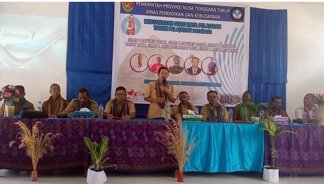 Musyawarah Guru Mata Pelajaran (MGMP) yang diikuti para guru dari 5 SMA di Fatuleu Barat (Fatbar) dan Amfoang sejak Senin hingga Rabu (11-13/09/2023) resmi dibuka oleh Kordinator Pengawas (Korwas) SMA Kabupaten Kupang, Stefen Talo, S.Pd.,M.Pd. di Aula SMAN 1 Amfoang Barat Laut, Kecamatan Amfoang Barat Laut (Ambal) pada Senin (11/09/2023) siang.
